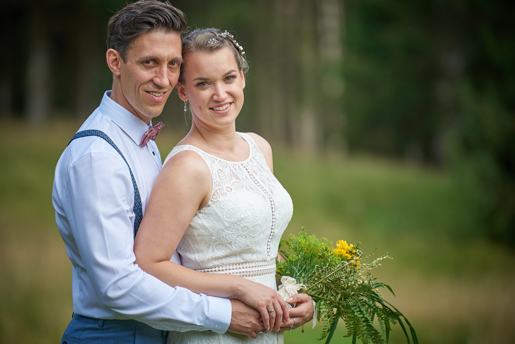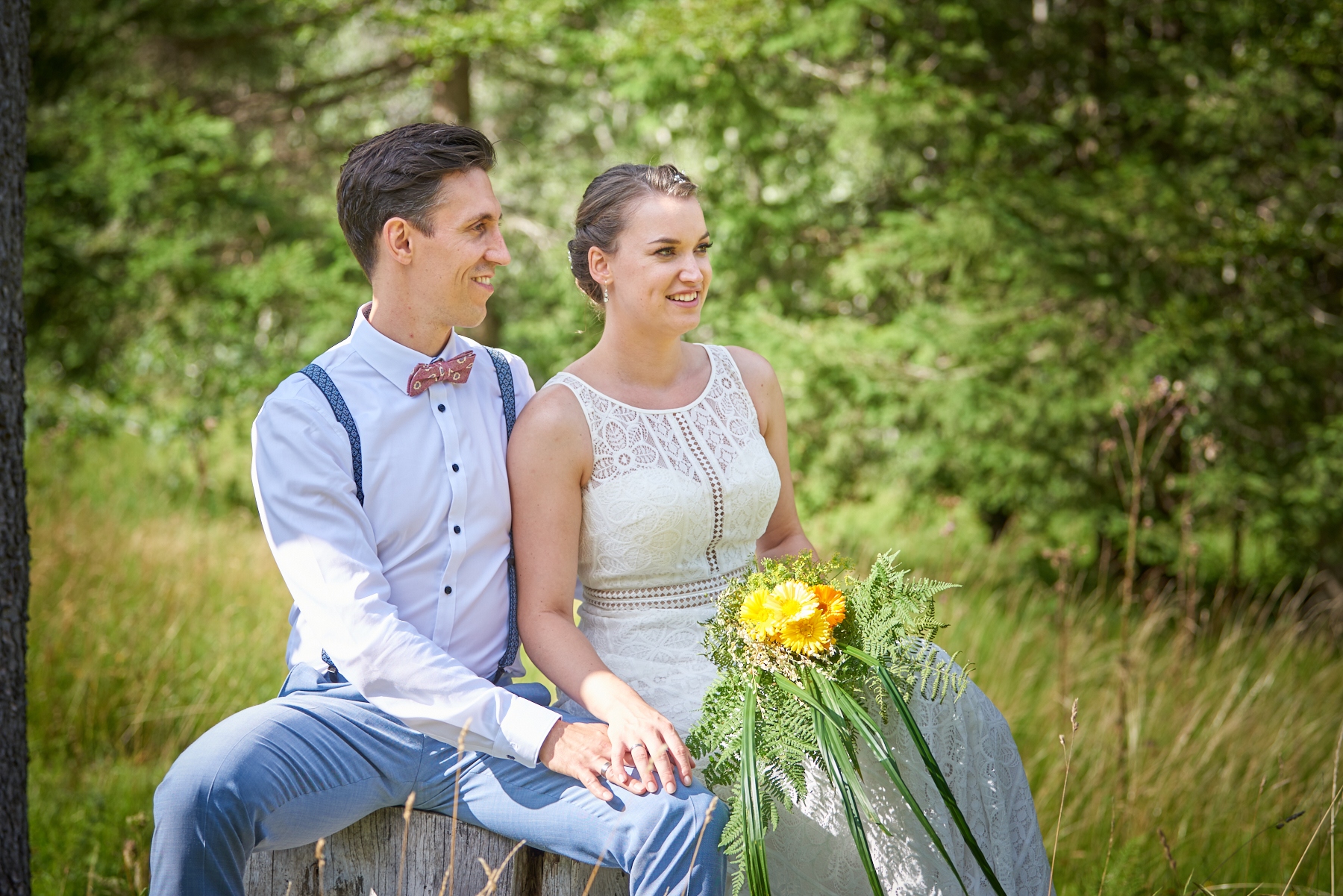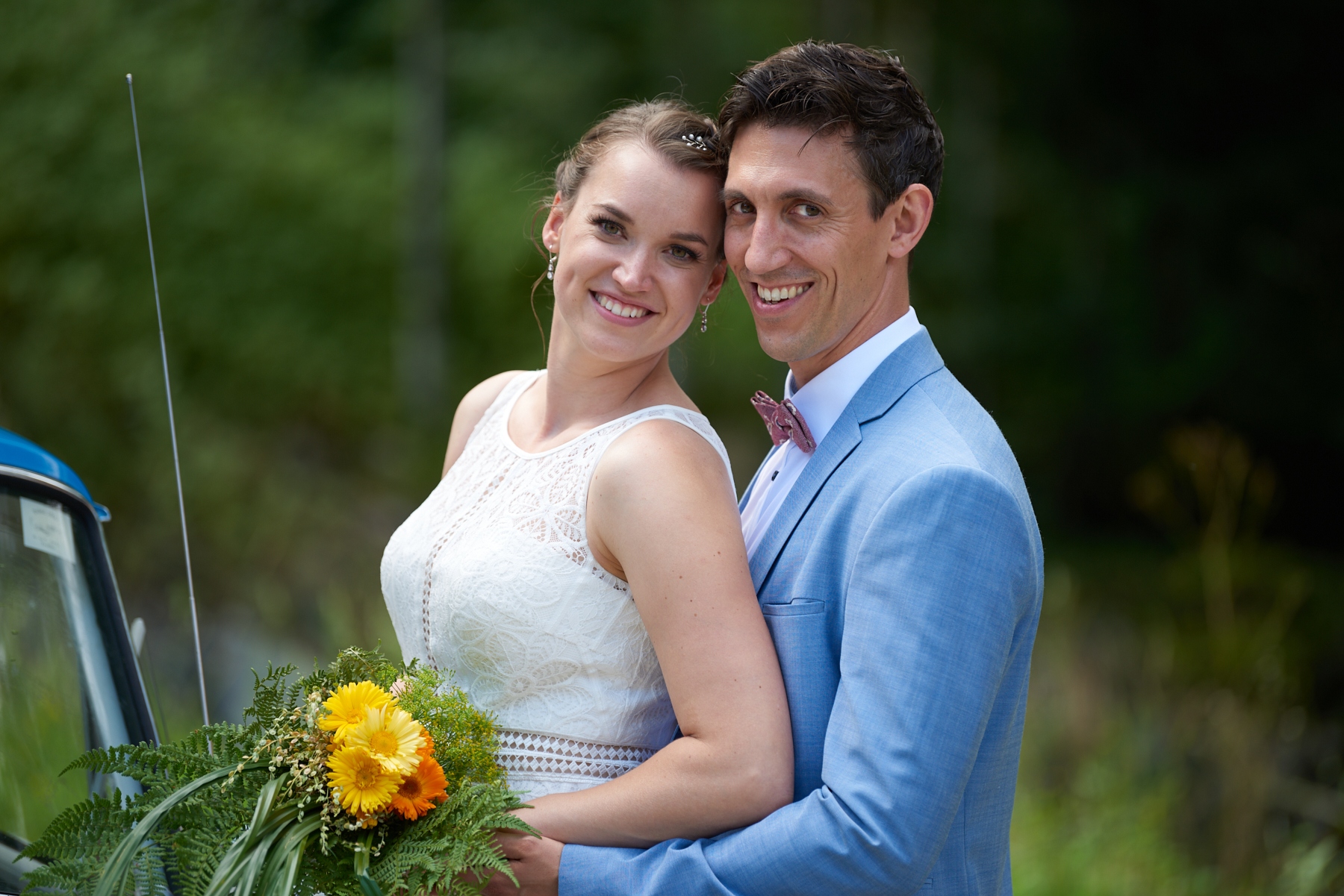 In der Evangelischen Kirche „Zum guten Hirten“ in Fischen schritt Ann-Katrin am schönen Samstagnachmittag, des 10. August, zu ihrem Bräutigam James Bierbrauer, um von ihrer ehemaligen Religionslehrerin Frau Doris Eckert in ihrer herzlichen Art getraut zu werden.