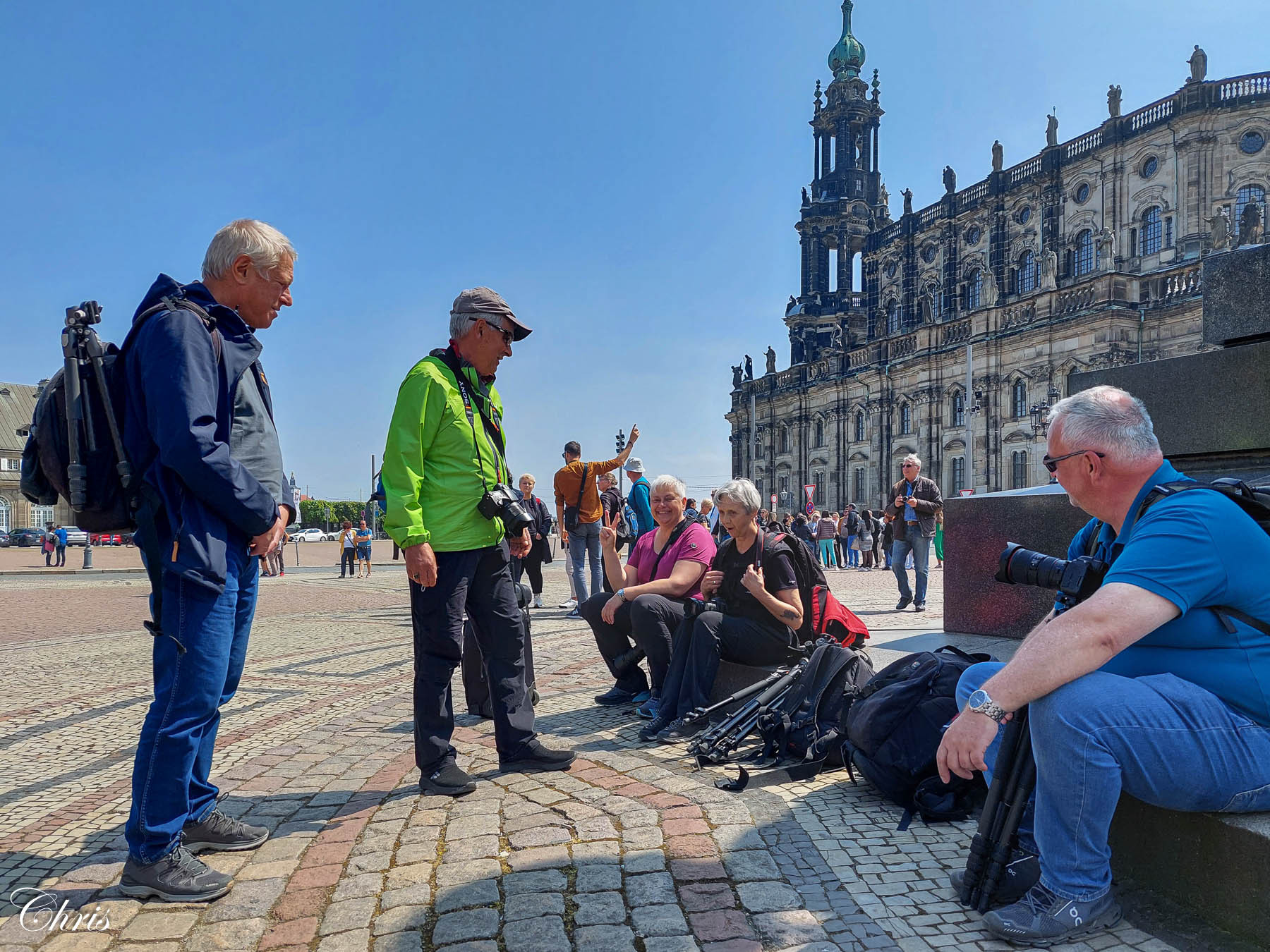 Wir haben mit Bewegungsunschärfen der Dresdner Tram gespielt, Panoramen der Stadt gemacht, auf dem Zwinger Ecken ohne Touristen gesucht, sind viel gelaufen, haben gut gegessen, viel gelacht, hatten kurze Nächte und haben eine tolle Zeit miteinander erlebt. Es hat uns sehr gefreut, den Dresdner Fotoclub EXAKTA mit Wolfgang Krause kennen zu lernen. Wolfgang hat uns in den Vorbereitungen toll unterstützt! Vielen Dank nach Dresden! Gemeinsam hatten wir eine Sonderführung in und auf der Dresdner Frauenkirche und einen lustigen und informativen Abend im Gasthaus „zum Knipser“ …der seinem Namen alle Ehre macht.