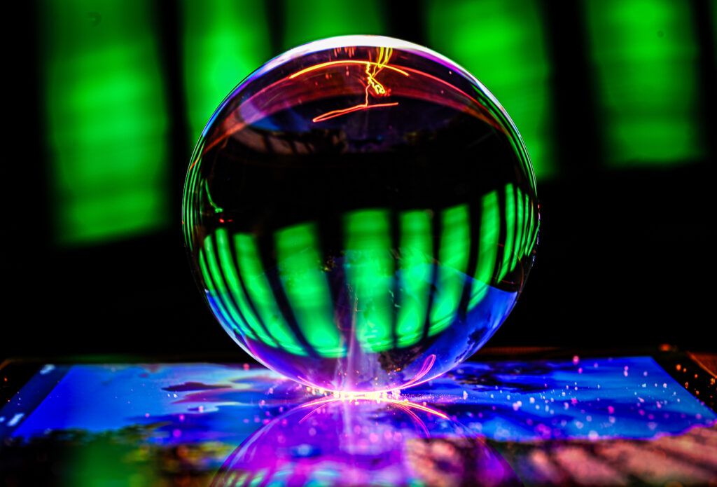 Dabei entstanden unzählige Variationen, von abstrakten Details bis hin zu faszinierenden Spiegelungen ganzer Landschaften, die mithilfe eines Tablets oder Computers in die Glaskugel projiziert wurden. Der gemeinsame Austausch und die Begeisterung für neue Blickwinkel machten diesen Fotoabend zu einem inspirierenden Erlebnis für alle Beteiligten.