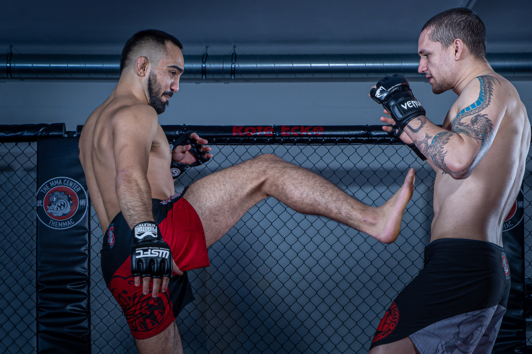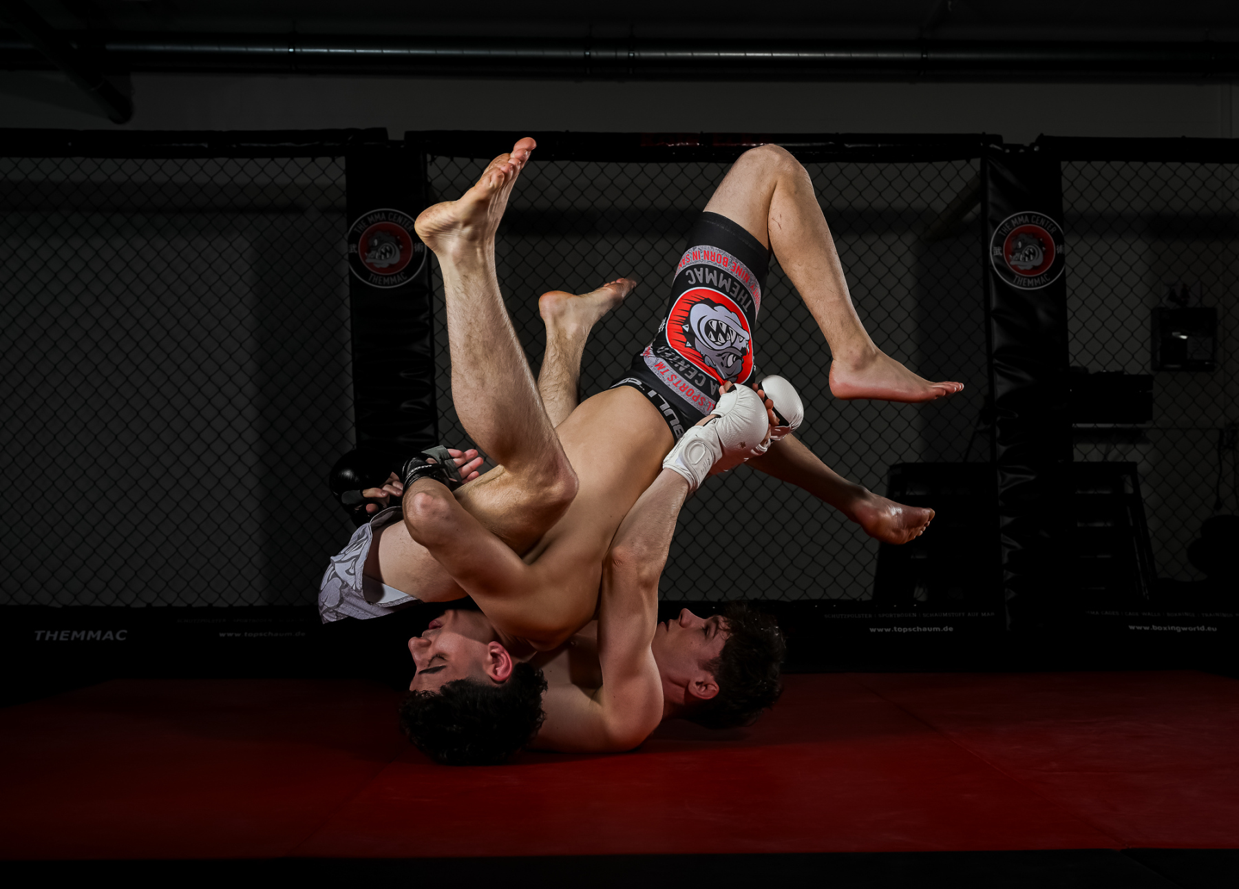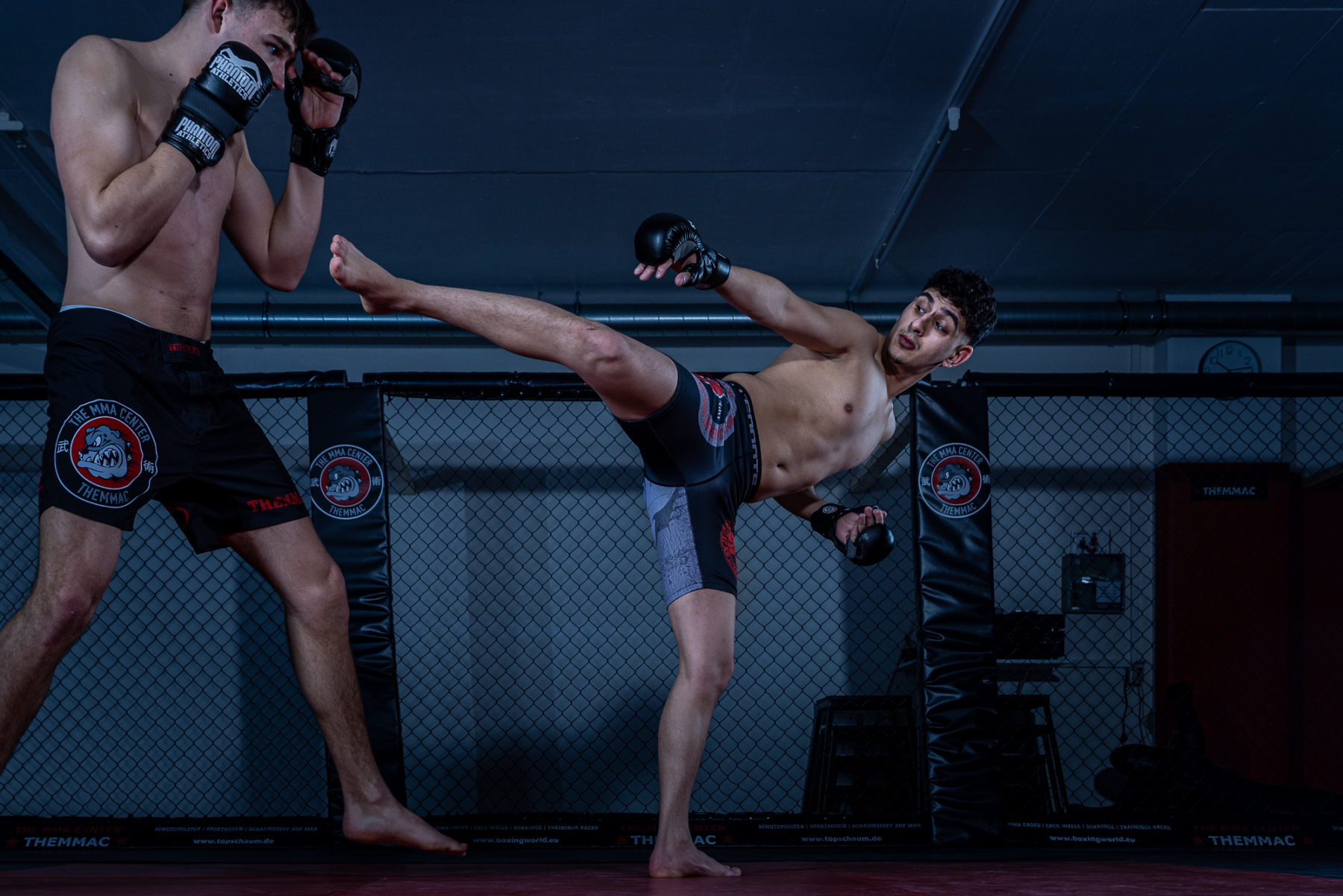 Vor Ort wurden zwei mobile Blitzstudios aufgebaut, die flexible Lichtsetups ermöglichten und optimale Bedingungen für unterschiedliche Aufnahmesituationen boten. In enger Zusammenarbeit mit den MMA-Fightern entstanden zahlreiche ausdrucksstarke und bewegungsintensive Bilder.