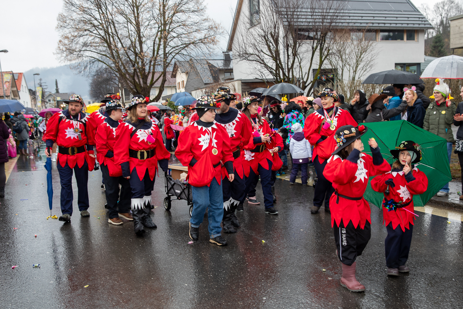 Schon kurz nach Beginn zeigte sich, dass selbst Dauerregen die Feierlaune nicht trüben konnte. Mit Schirmen, Regenjacken und viel Humor feuerten die Zuschauer die vorbeiziehenden Gruppen an. Jung und Alt feierten gemeinsam und machten den Umzug zu einem fröhlichen Erlebnis.