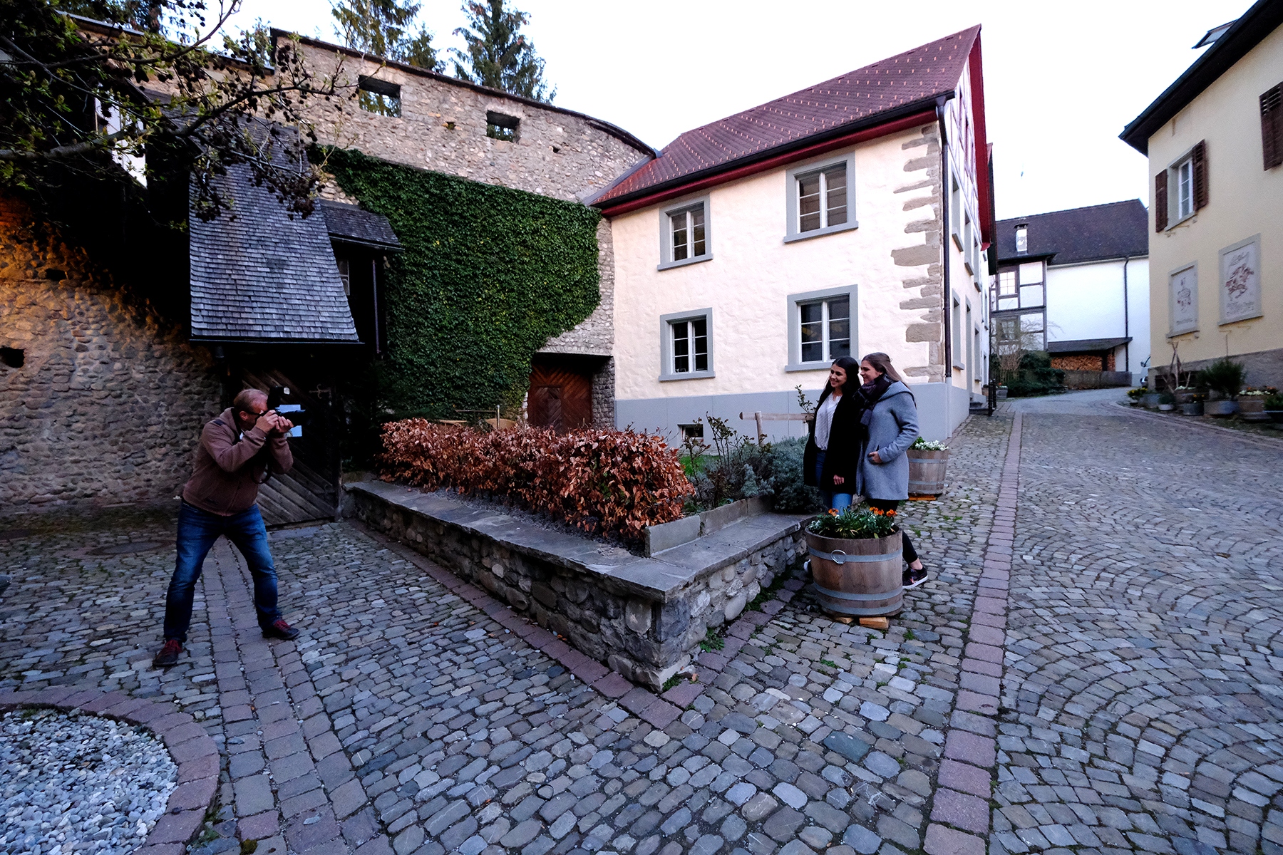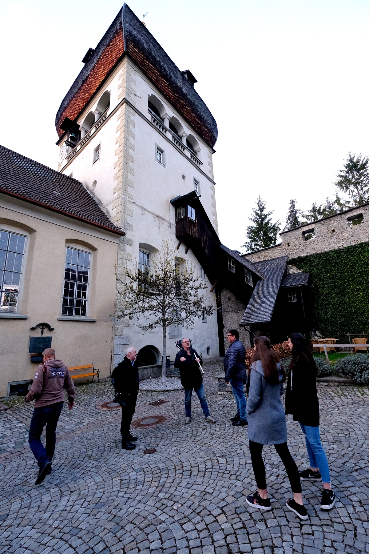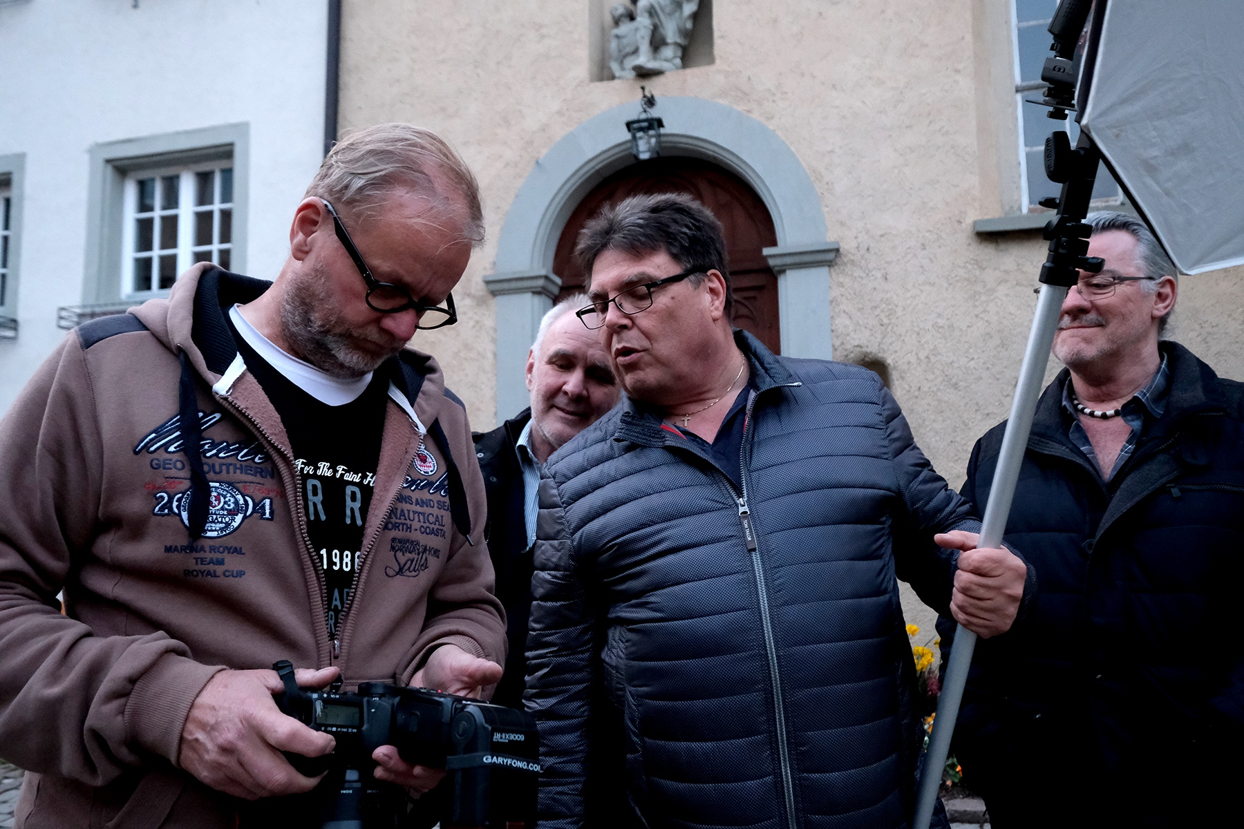 Die Vorbereitungen für den Themenabend „Streetfotografie“, der am kommenden Donnerstag stattfindet, laufen auf Hochtouren. So begaben sich die Organisatoren Peter, Walter, Mario, Roland und Harald sowie den beiden hübschen Models Noreen und Isabelle schonmal vorab zu der Location in die Bregenzer Oberstadt sowie in die Kaiserstraße, wo dann auch am Donnerstag fotografiert werden soll, sofern es das Wetter zulässt. Am Fuße des altehrwürdigen Martinsturms kam gutes Equipment mit reichlich Blitz-Power zum Einsatz – Szene um Szene exerzierten Mario, Roland und Harald durch, um dann am Donnerstag alles minutiös genau inszenieren zu können. Noreen und Isabelle machten ihre Sache mit vollem Einsatz und Geduld ebenfalls sehr gut.