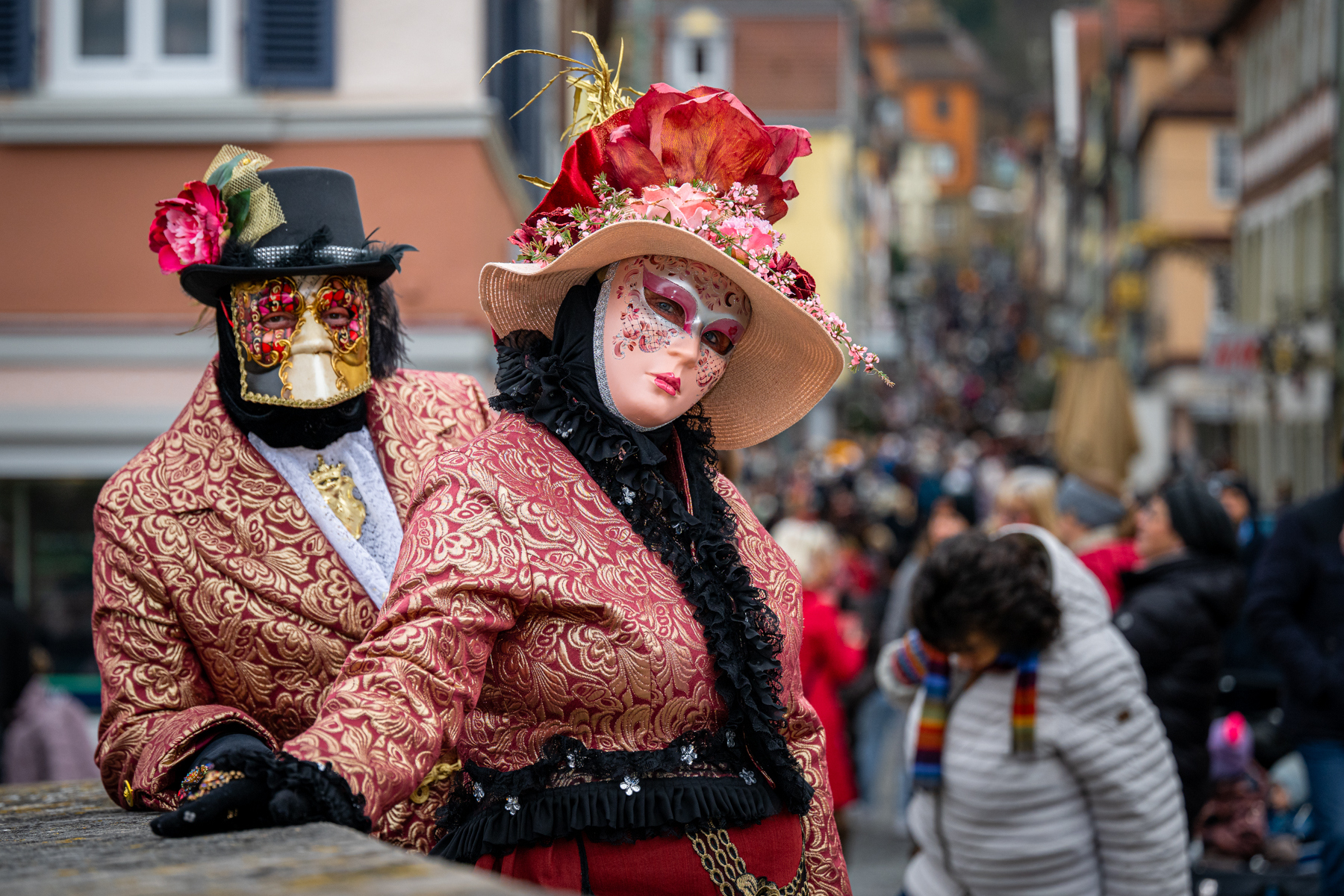 Am Sonntag zeigte sich die Altstadt von Schwäbisch Hall im vollen Glanz des venezianischen Karnevals. Masken aus ganz Deutschland verteilten sich über die Stadt, ließen Besucher staunen und füllten Gassen und Plätze mit anmutiger Präsenz. Kameras klickten ununterbrochen, Motive gab es im Überfluss. Der Höhepunkt war das große Defilee am Dom – ein beeindruckendes Schauspiel, das besonders jene genießen konnten, die sich früh einen guten Platz gesichert hatten.